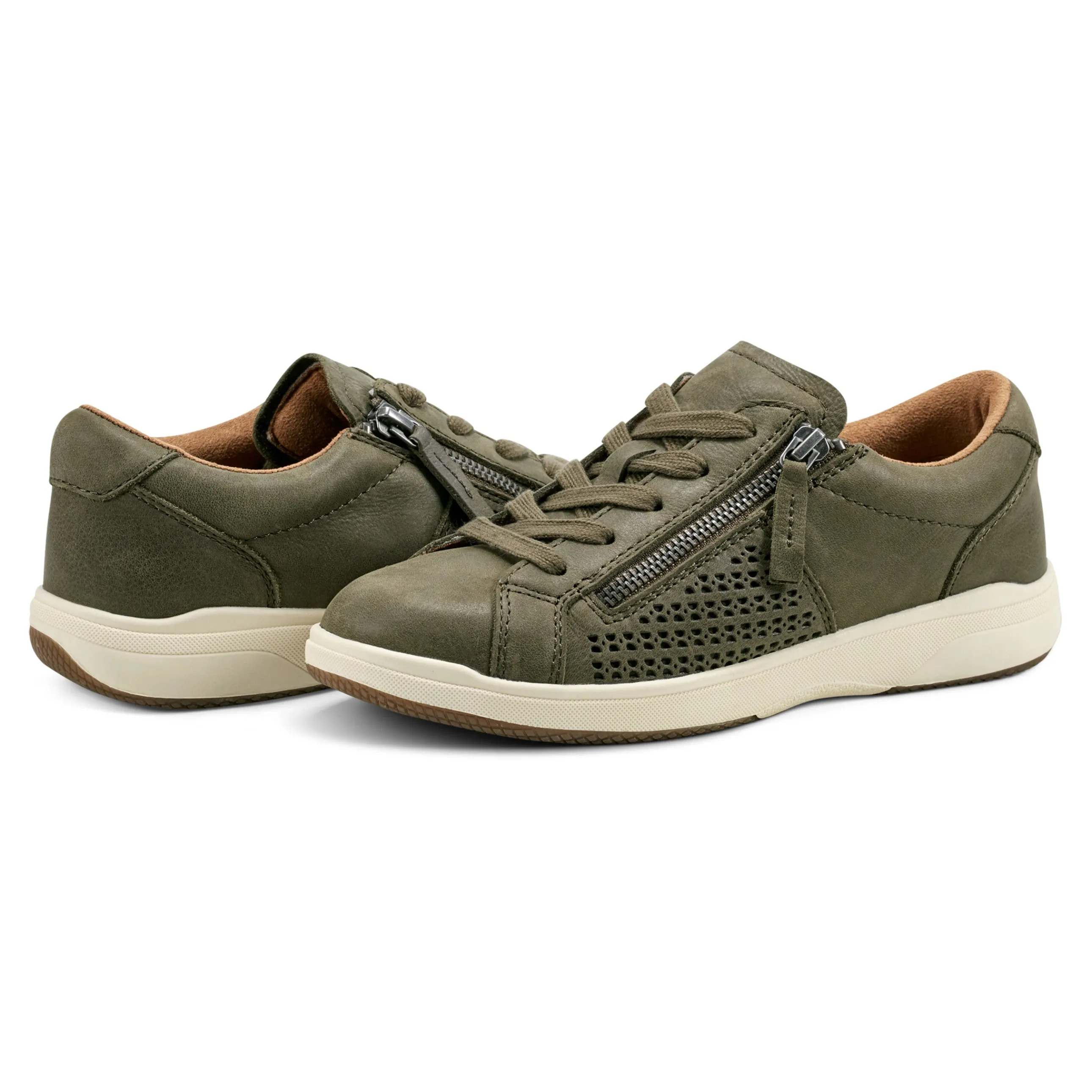 - Netta casual lace-up sneaker features an easy to wear lace-up design with an additional easy zipper closure, a lightweight outsole and removable cushioned footbed with a plush layer of memory foam.