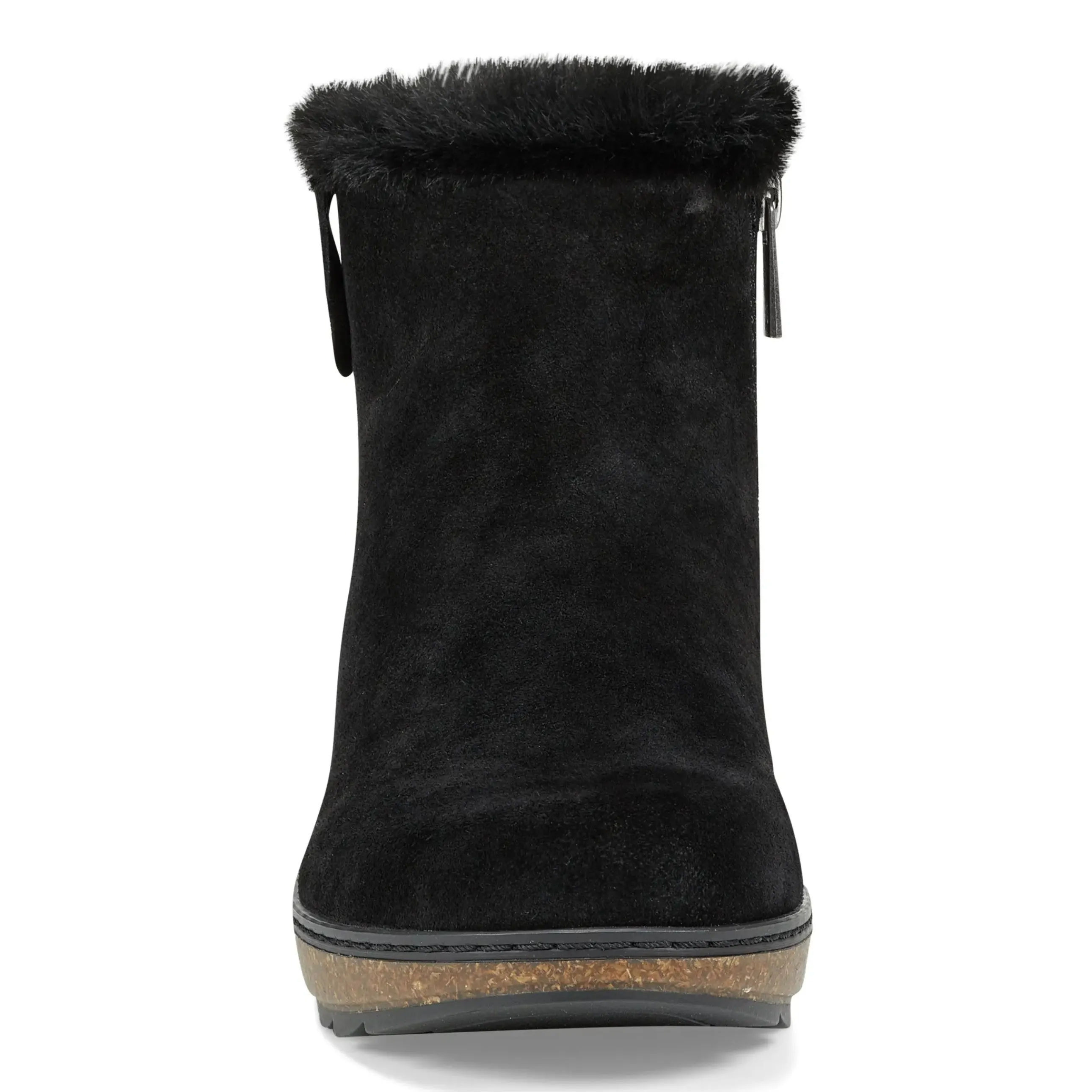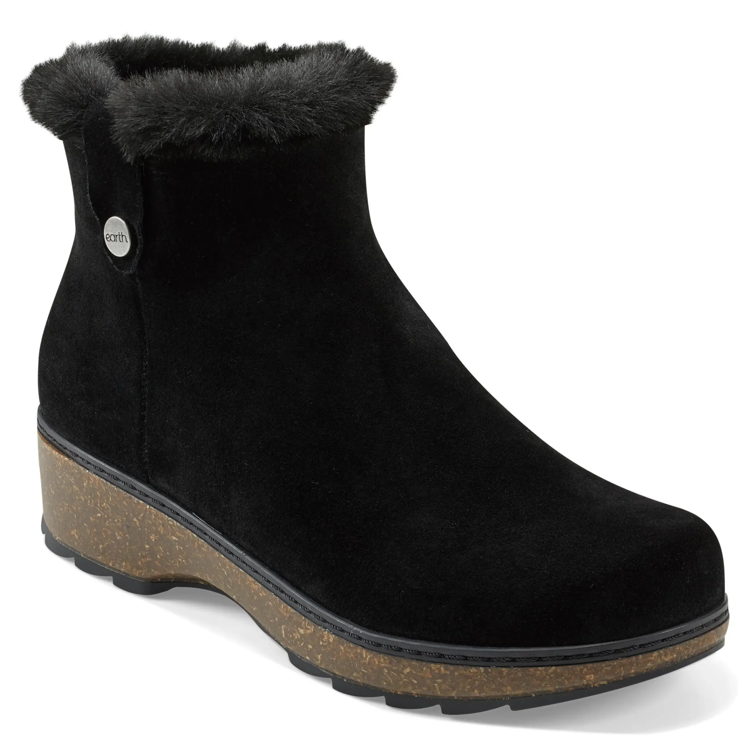 - Kim casual bootie features recycled faux shearling, arch support and a natural cork footbed. Plus, it offers a side zipper for easy on and off access. Extraordinary comfort for everyday pursuits.