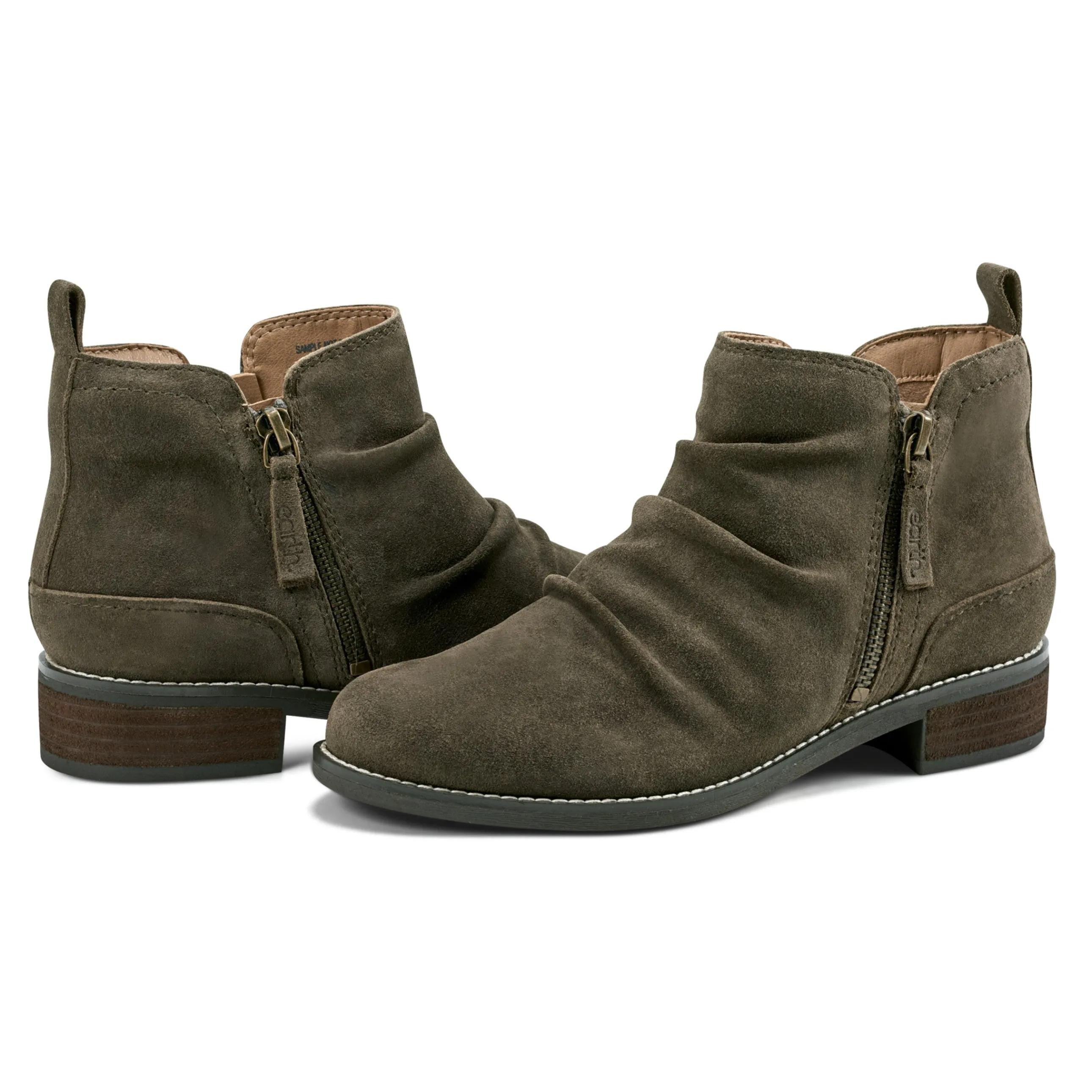 - The Nadya casual bootie features a round toe, ruched detail and a stacked heel. Plus, it offers a side zipper for easy on and off access. Extraordinary comfort for everyday pursuits.
