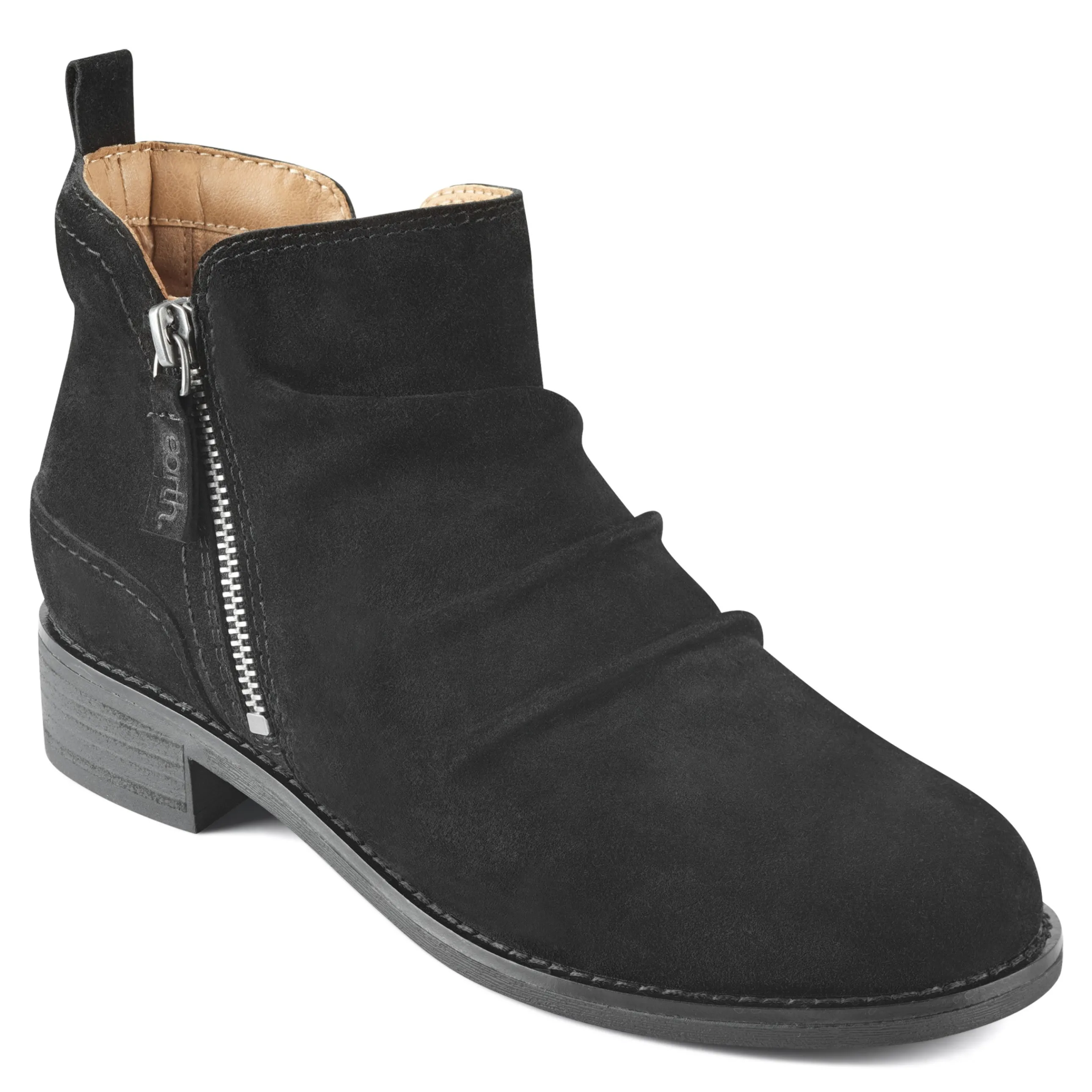 - The Nadya casual bootie features a round toe, ruched detail and a stacked heel. Plus, it offers a side zipper for easy on and off access. Extraordinary comfort for everyday pursuits.