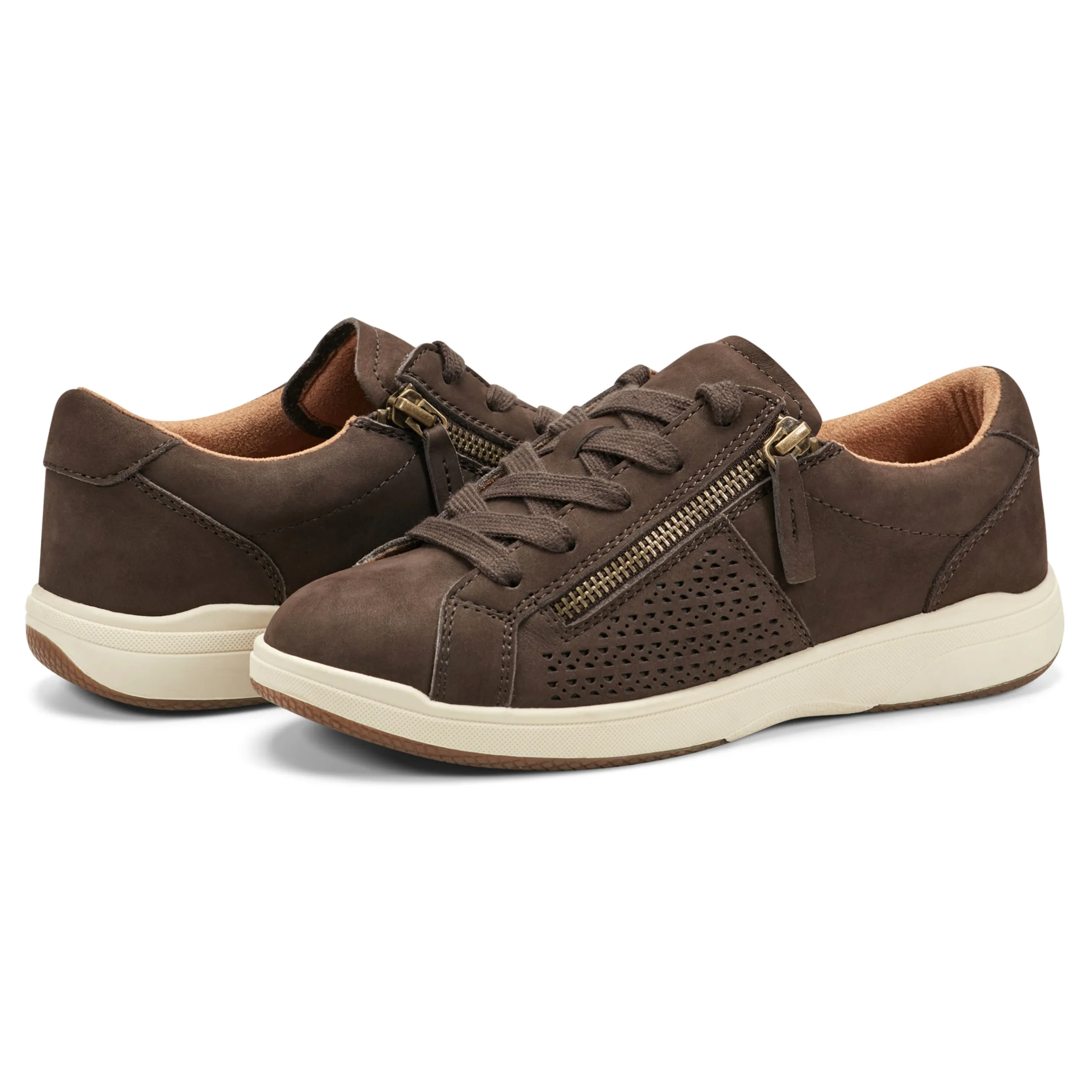 - Netta casual lace-up sneaker features an easy to wear lace-up design with an additional easy zipper closure, a lightweight outsole and removable cushioned footbed with a plush layer of memory foam.