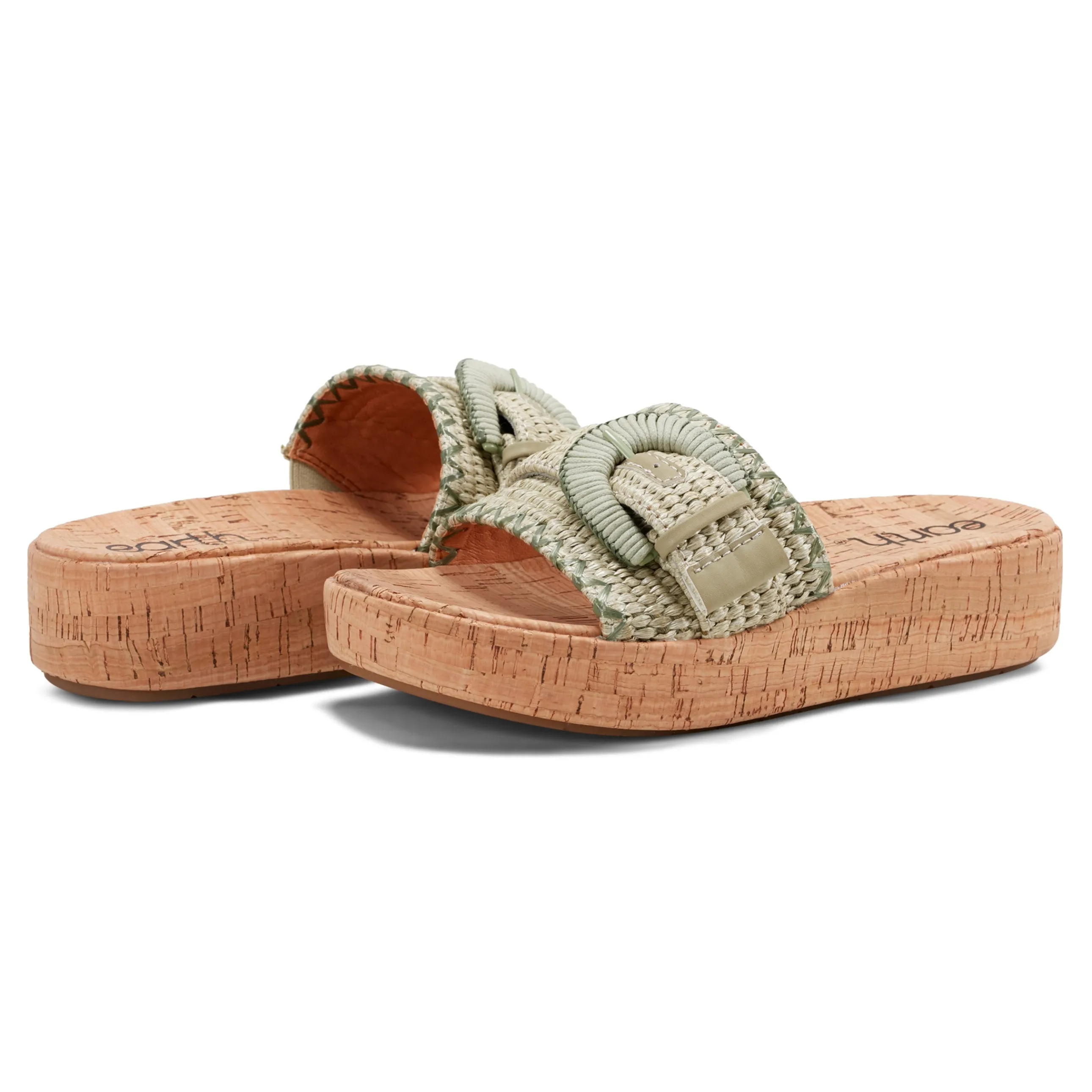 - Supreme comfort, responsible design, effortless styles, the earth® Samsy wedge sandal has all three. It features a cork footbed with foam cushioning, slip-on silhouette with raffia detail and a durable outsole for all day comfort. Extraordinary comfort for everyday pursuits.